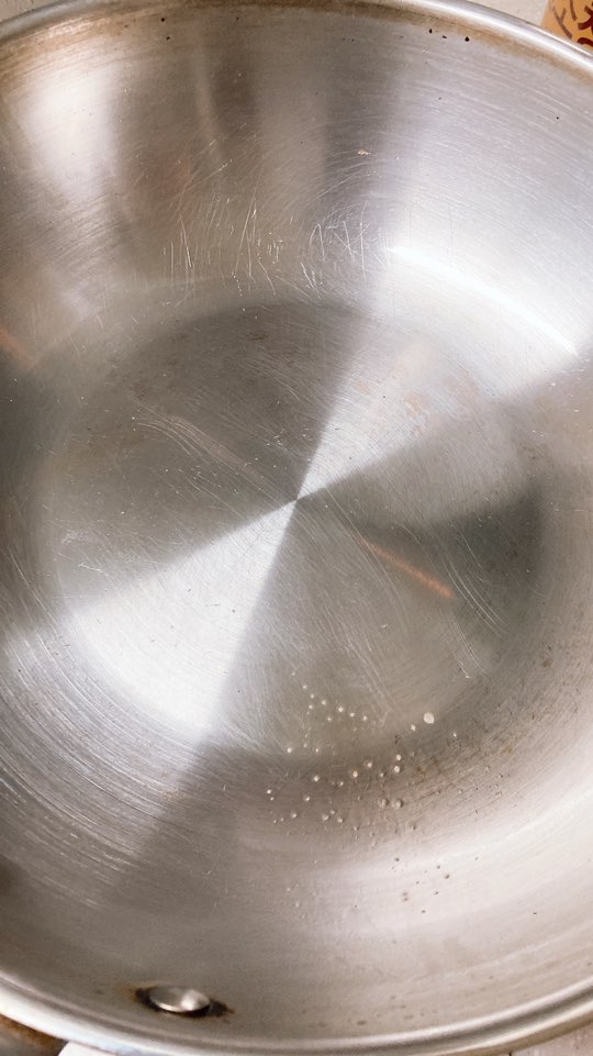 차가운 물로 헹구면 왠지 잘 안 될거 같아서 스텐 웍을 찬물에 헹구지는 않고 뜨거운 상태로 조심조심 수세미로 문질렀어요~