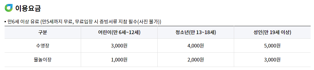 필수는 아니지만 챙기면 좋은 물품들은 아쿠아슈즈, 튜브, 수건, 갈아입을 옷, 썬크림, 돗자리(또는 캠핑의자), 간이 테이블, 간단한 먹거리 등입니다. 수영장 내 화장실이 잘 관리되고 있지만 맨발로 이용하는 건 아무래도 찝찝하겠죠? 아쿠아슈즈는 왠만하면 챙기면 여러모로 좋습니다. 그리고 수영장 내 매점에서 여러 먹거리들(라면, 우동, 짜장면, 소떡소떡, 순대 등)을 팔고 있지만 간단한 간식거리 정도는 준비해가면 더 저렴하게 수영장을 이용할 수 있습니다.