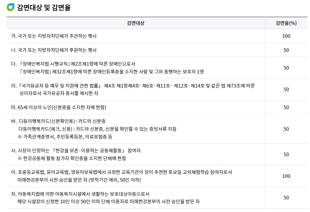 뚝섬 한강수영장 이용요금은 성인 5000원, 청소년 4000원, 어린이 3000원이며, 만5세까지는 무료입니다. 다둥이 카드 등으로 감면이 가능하며, 감면 혜택은 반드시 실물 증빙자료를 지참하여야 합니다.